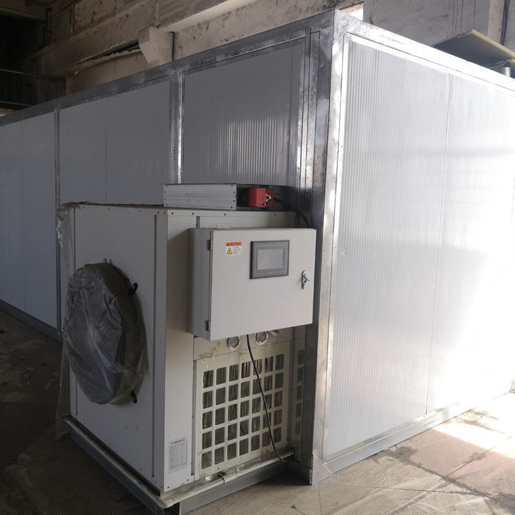 4、中藥材超高溫空氣源熱泵——烘干溫度85-105度之間的熱泵,結構復雜,配件昂貴,效率高。由于超高溫熱泵需要采用R14或R140等高沸點(40度以上)的制冷劑,因此只能采用閉環熱泵。接近100度的烘干溫度,基本上實現閃干,烘干速度非常快。